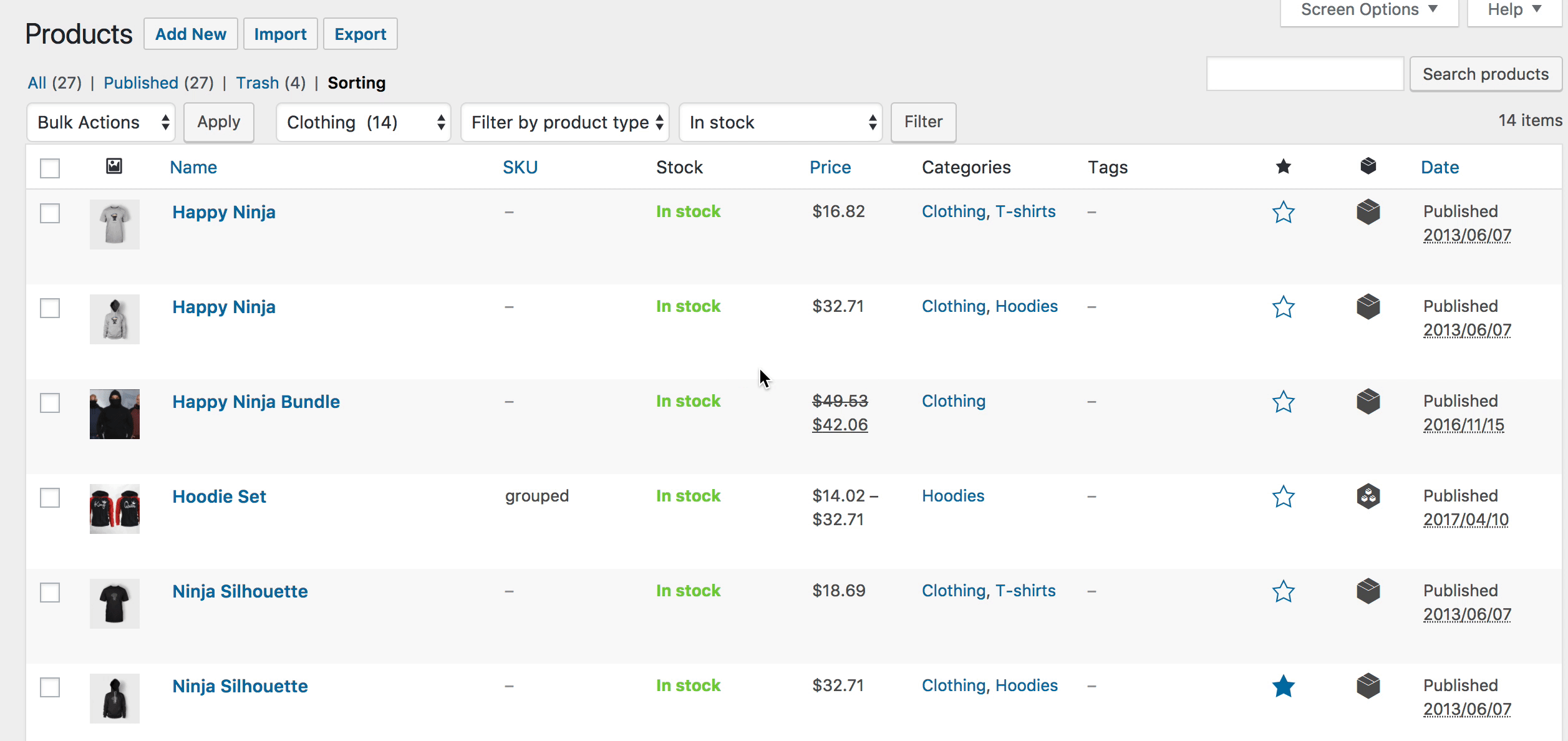 Adding a Simple product is similar to writing a post in WordPress.