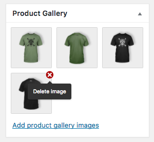 To remove an image from the product gallery, hover over the image and click on the red “x.”