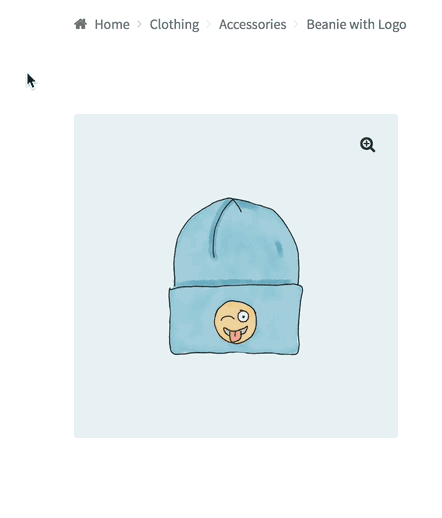 If you’re looking at a product and hover over it you’ll notice the image zooms in where your cursor is on the image. This is helpful to get a closer and quick look at some products that might have intricate details that aren’t clear in their normal image in your store.