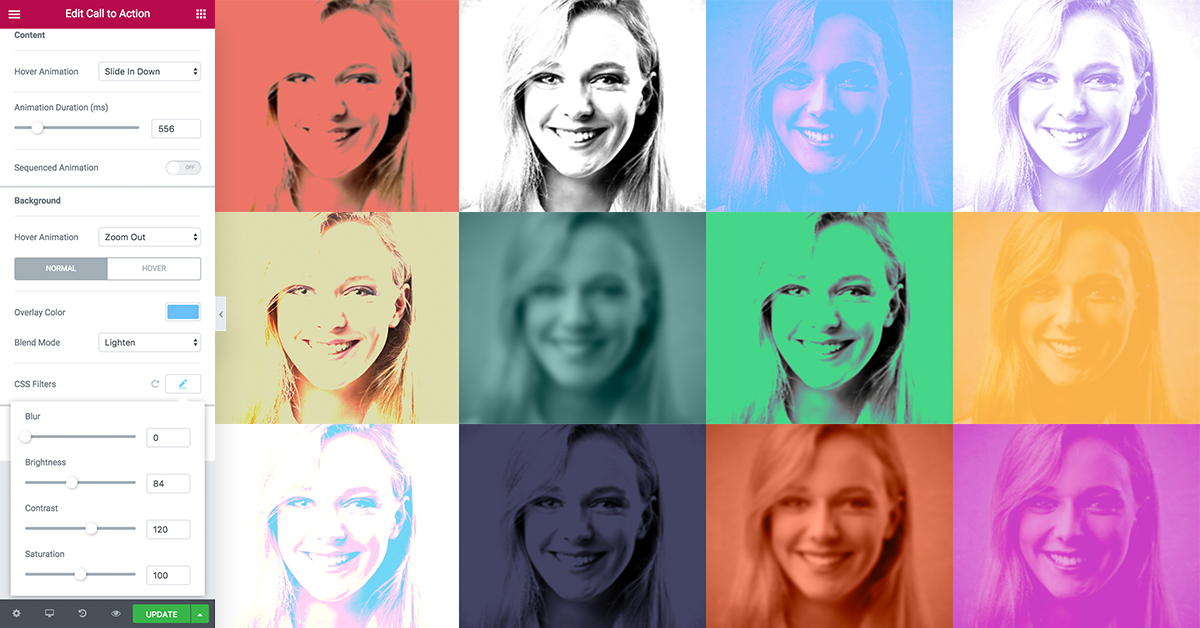 The Call to Action Widget is a tool for creating beautiful boxes that combine an image, some text, and a button. The widget uses animations and CSS effects to create user interactions, that appear when the user hovers over the box.