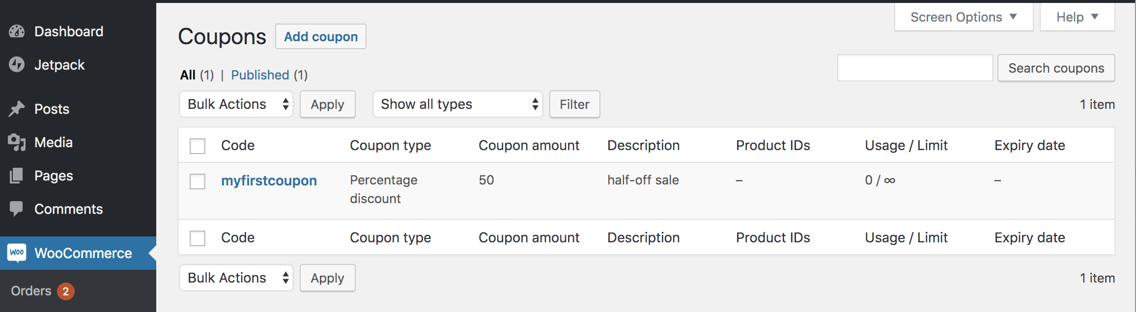 - Go to: WooCommerce > Coupons.