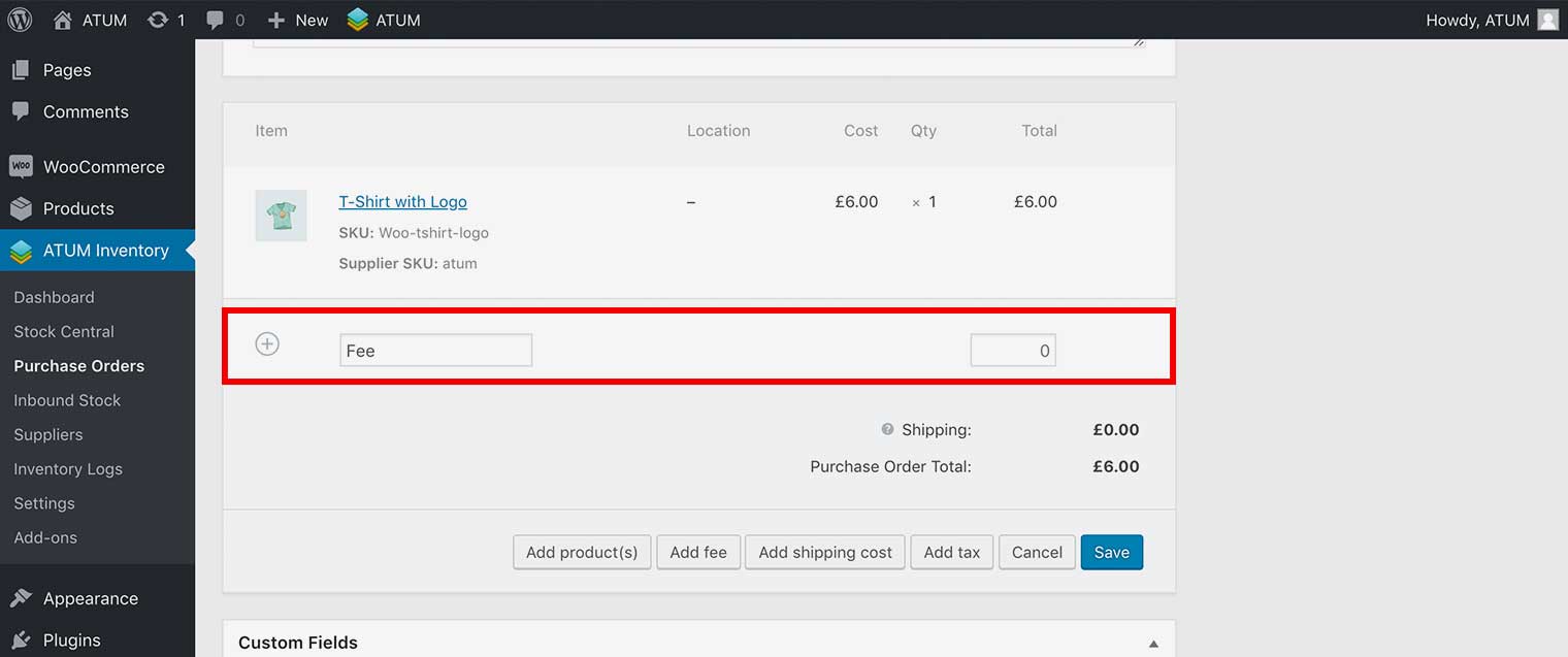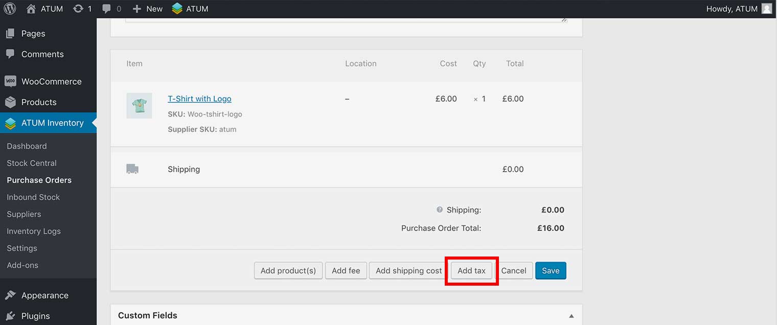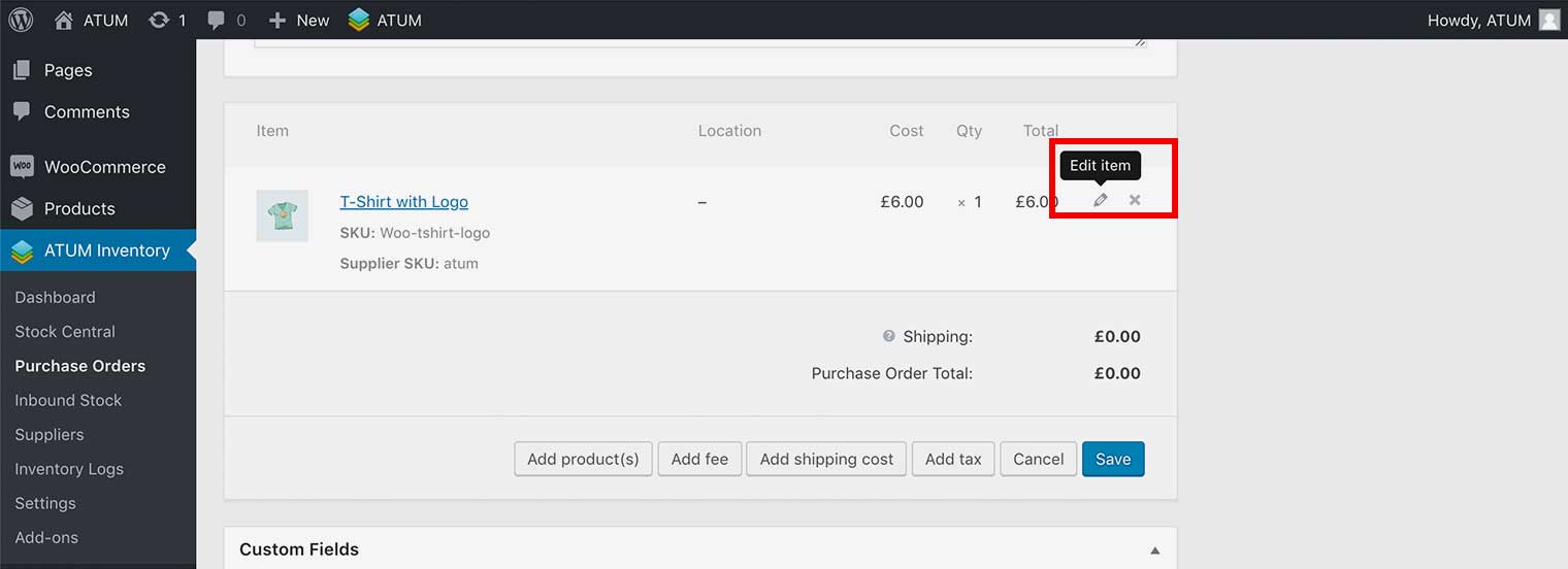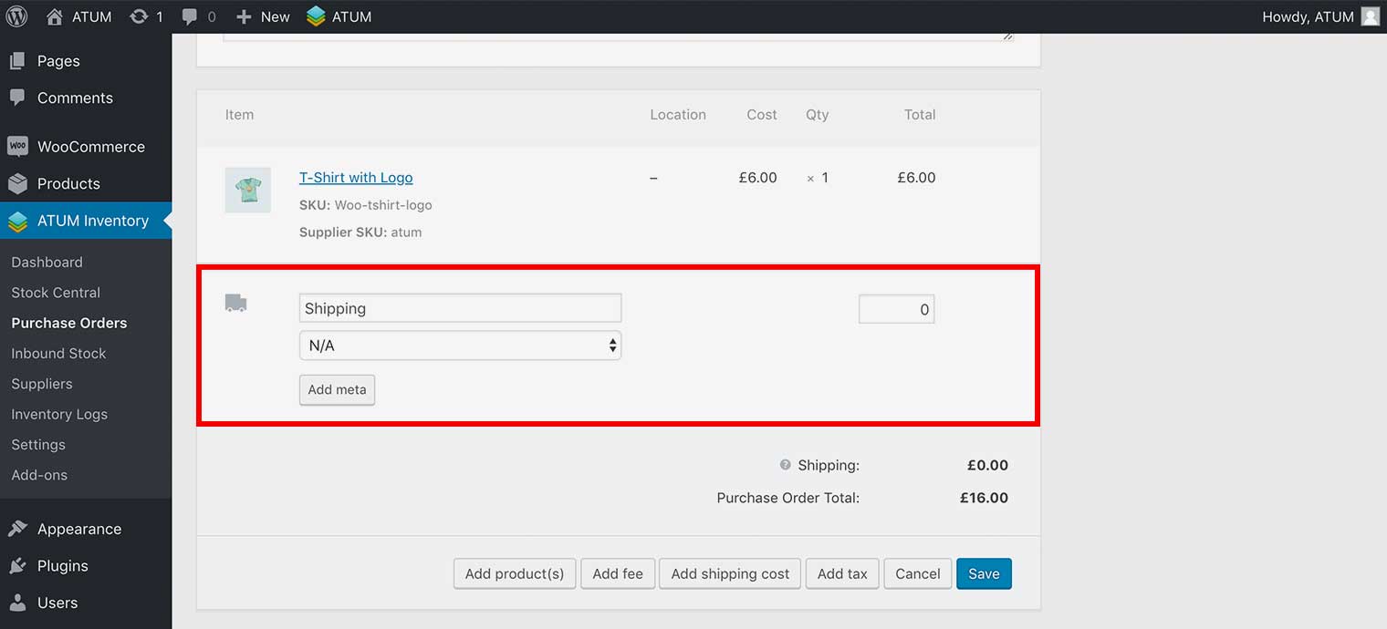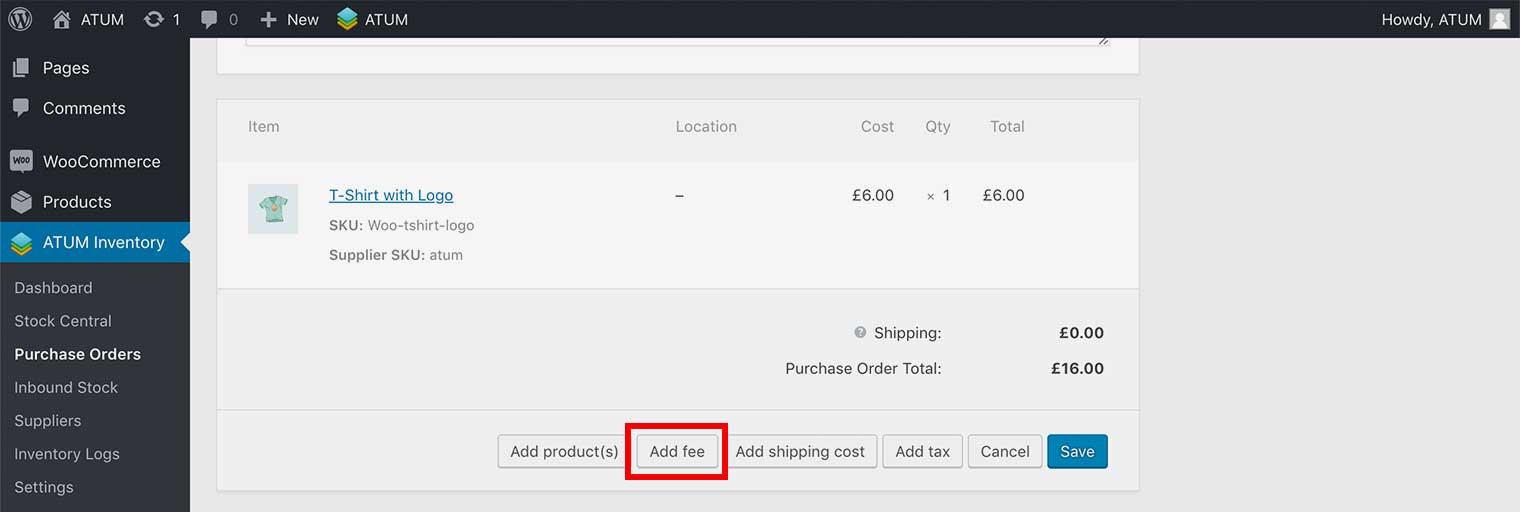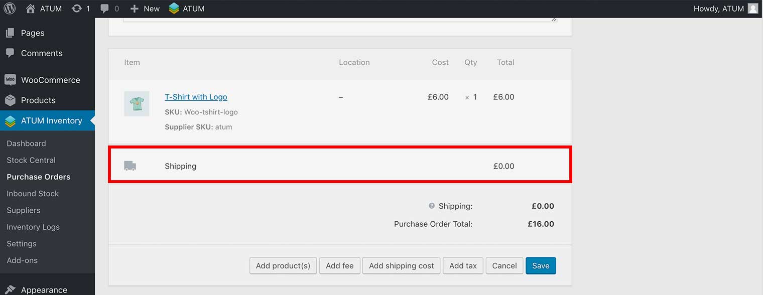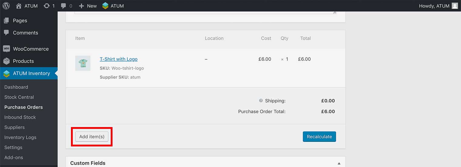 After you have set up products in WordPress, you can add purchase orders in ATUM when you purchase products from a supplier.