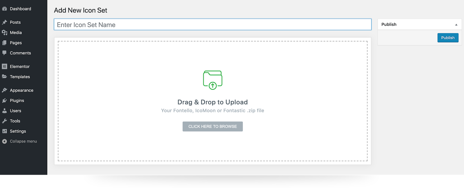 - Elementor > Custom Icons