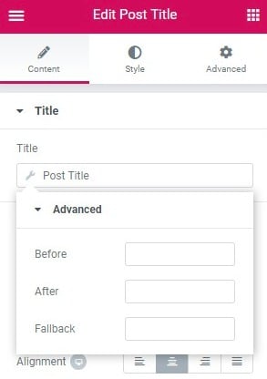 You have the option to add Before, After and Fallback content to each dynamic element. This is helpful for adding static content before or after dynamic content. Use the Fallback field to set default content to be used in case the element has no content or does not exist.