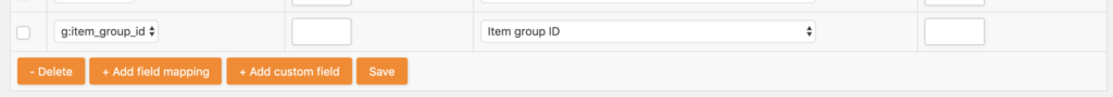 By default our plugin ad’s a mapping for the item_group_id field (used for Google Shopping). The item_group_id field indicates to Google which product variants belong to the same mother products and can be grouped together. When this default mapping has been removed on the plugin field mapping page our plugin won’t be able to retrieve all of the parent product information and can’t put it in your product feeds. Therefore, when you are creating a product feed for Google or Facebook, make sure to leave this default field mapping in place: