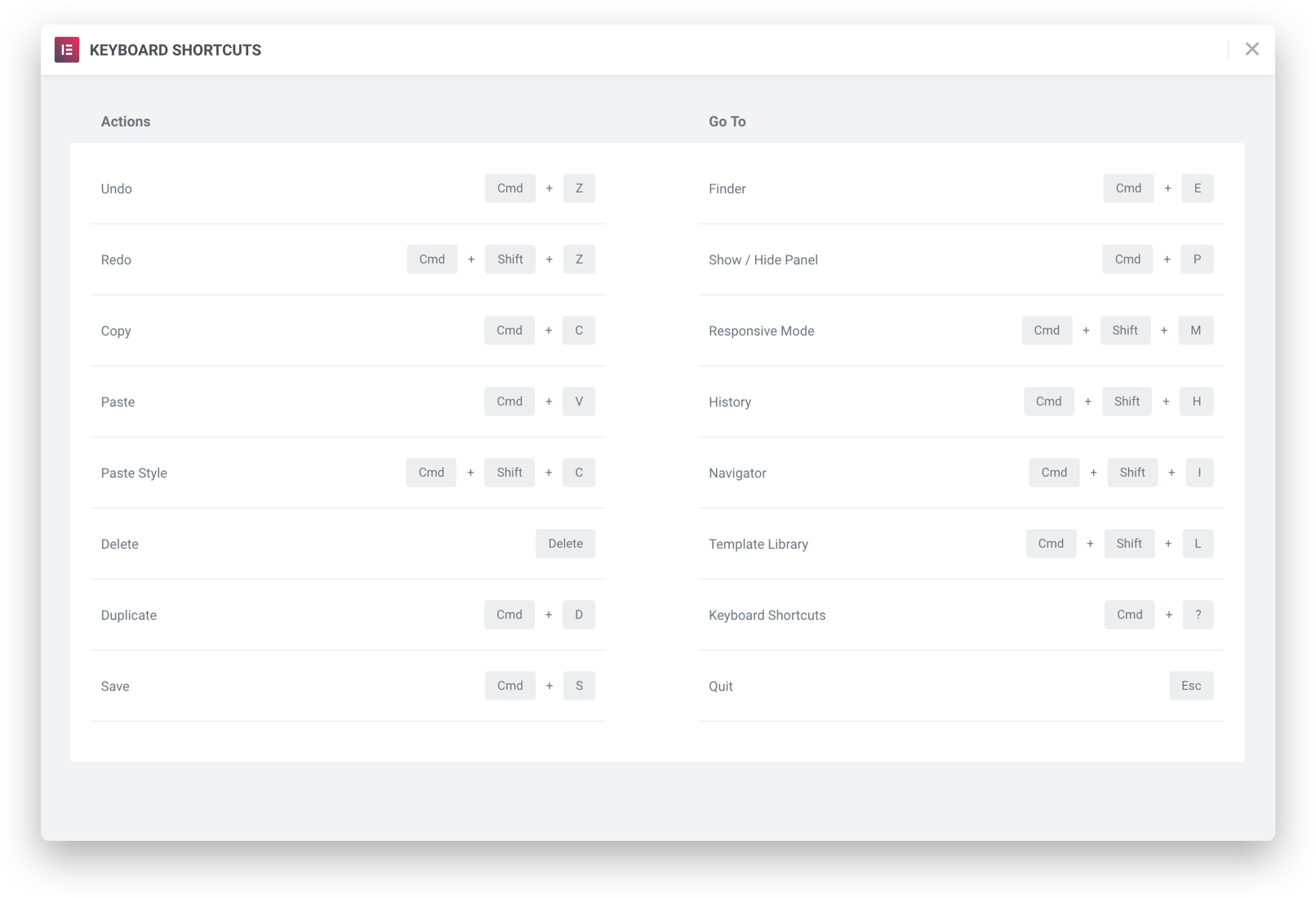 Hotkeys are keyboard shortcuts that can be used to do some common actions in Elementor. It saves you a lot of time because you don’t have to click anything.