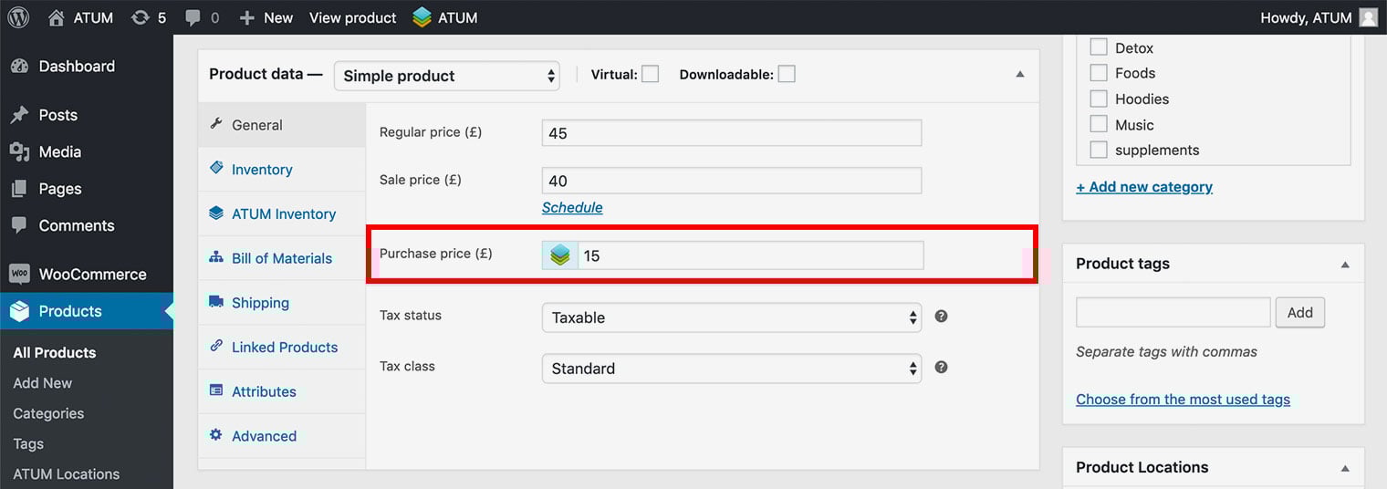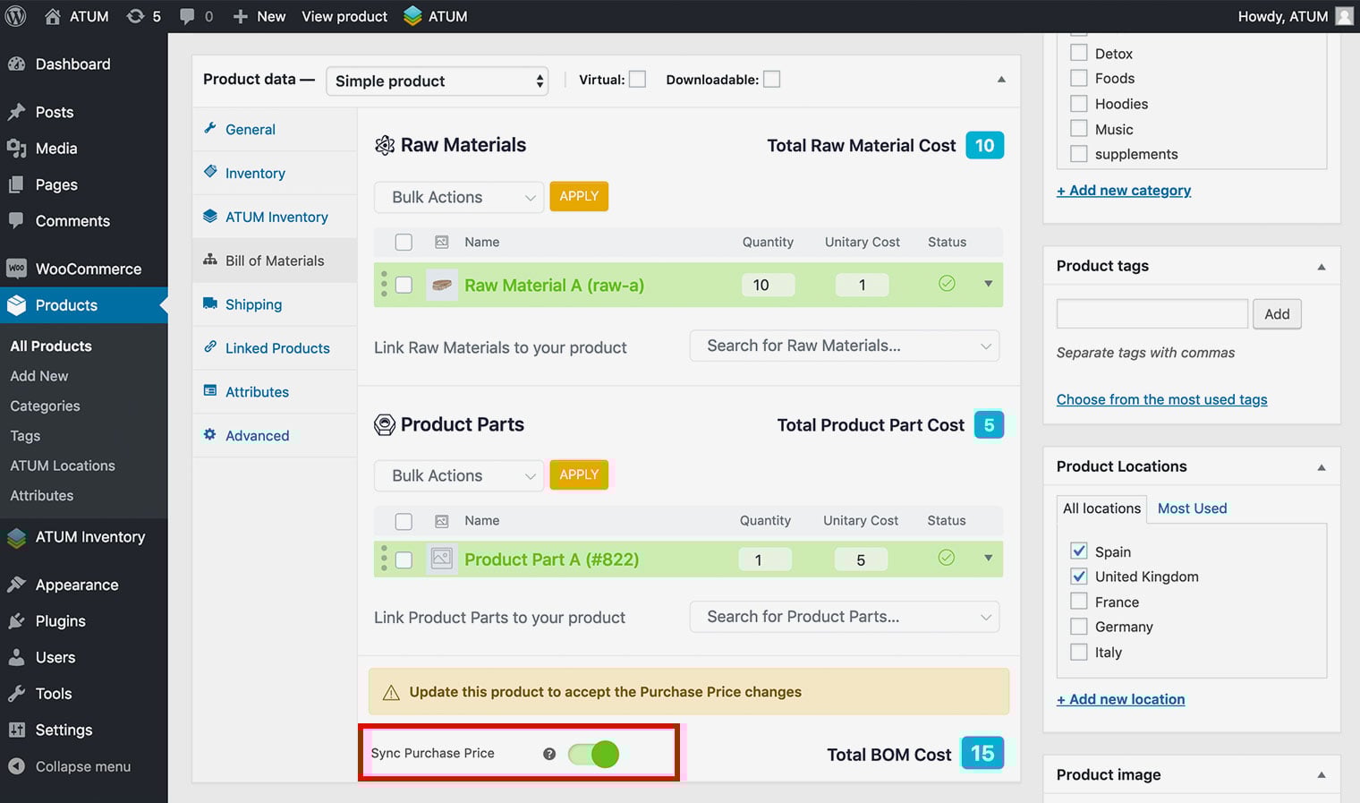 NOTE:Next to the field you have just edited ATUM shows the Raw Material Purchase Price.