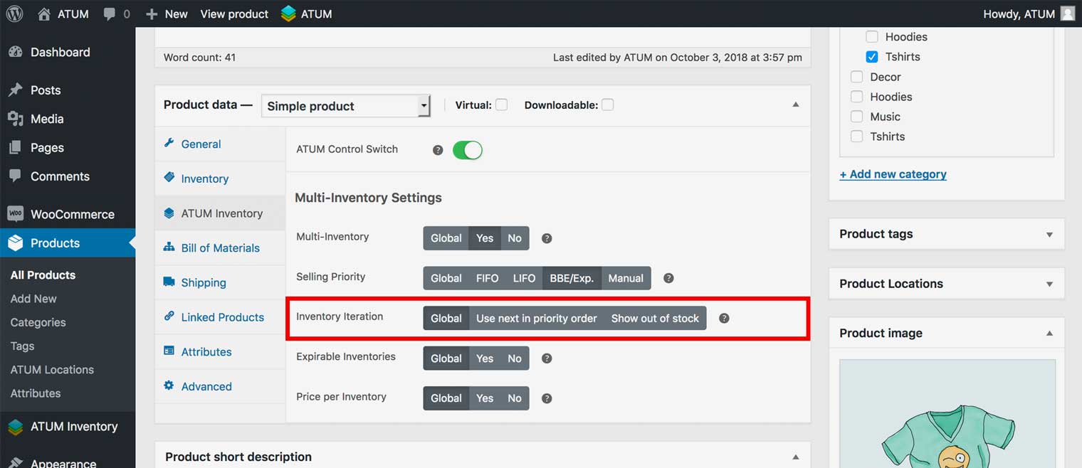 - In the product’s page go to the Product data section and select the tab called ATUM Inventory.