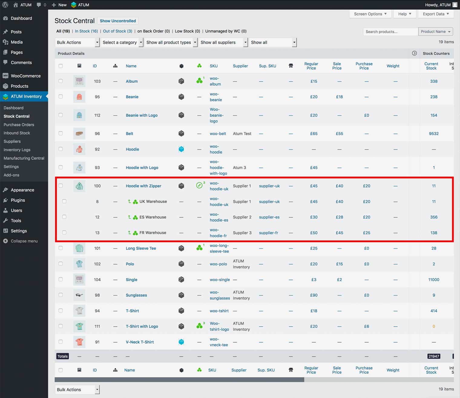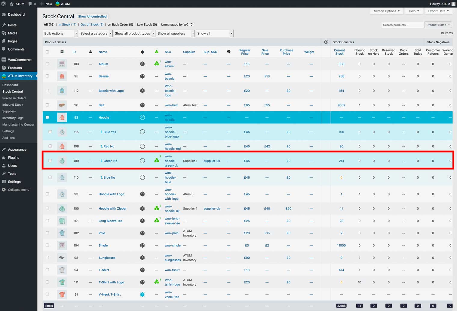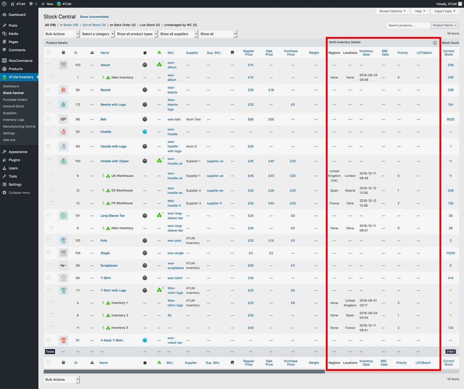 After the add-ons activation ATUM ads a set of new data columns into the Stock Central table.