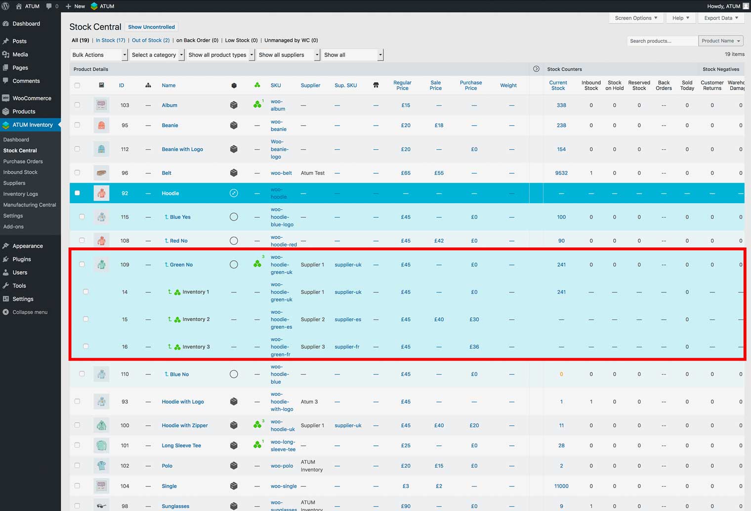 How to view Multi-Inventory products in Stock Central?