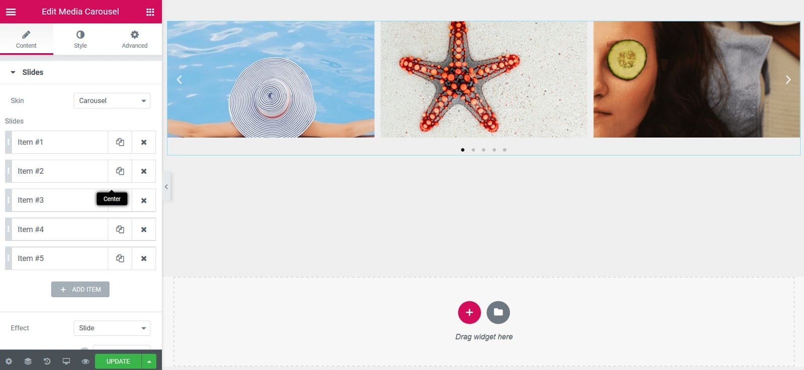 The Media Carousel widget allows you to create a slider of videos and images.