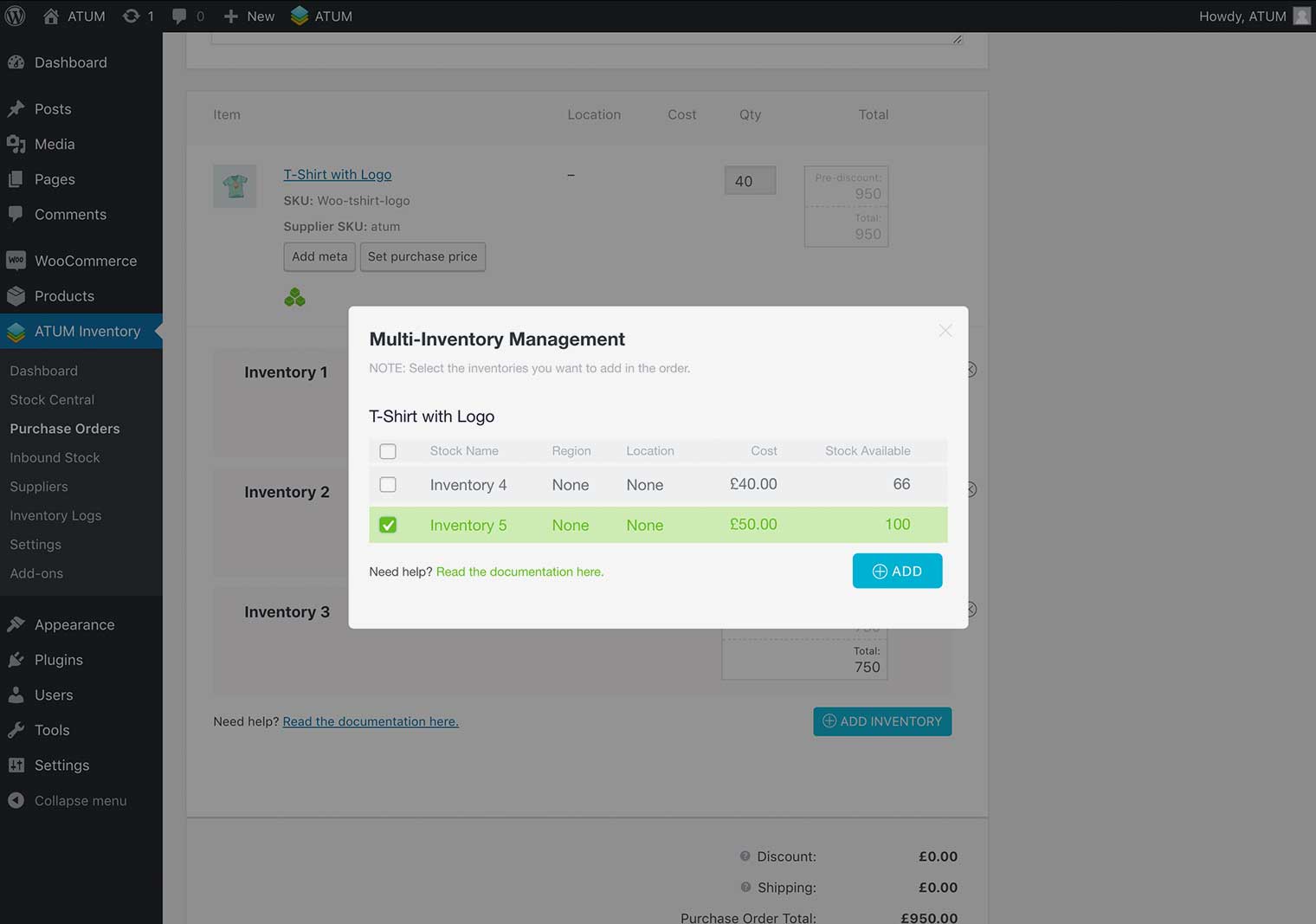 The ATUM Multi-Inventory add-on allows you to manage the Multi-Inventory Products in ATUM Purchase Orders.
