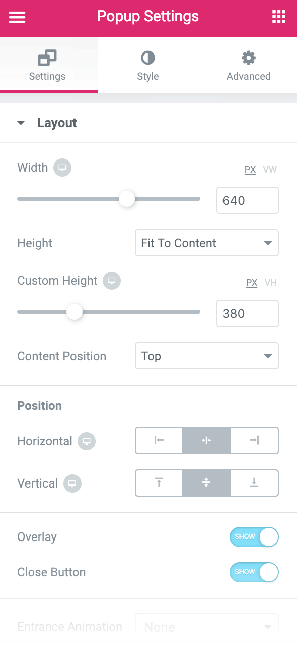 Popup Settings