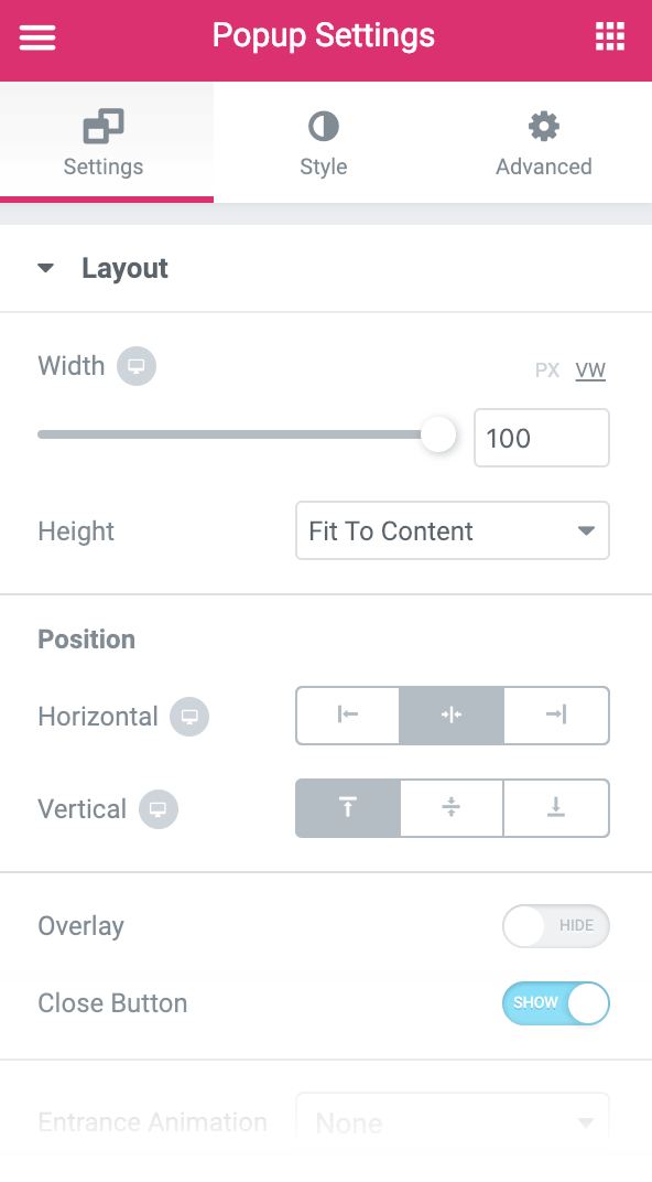 Popup Settings