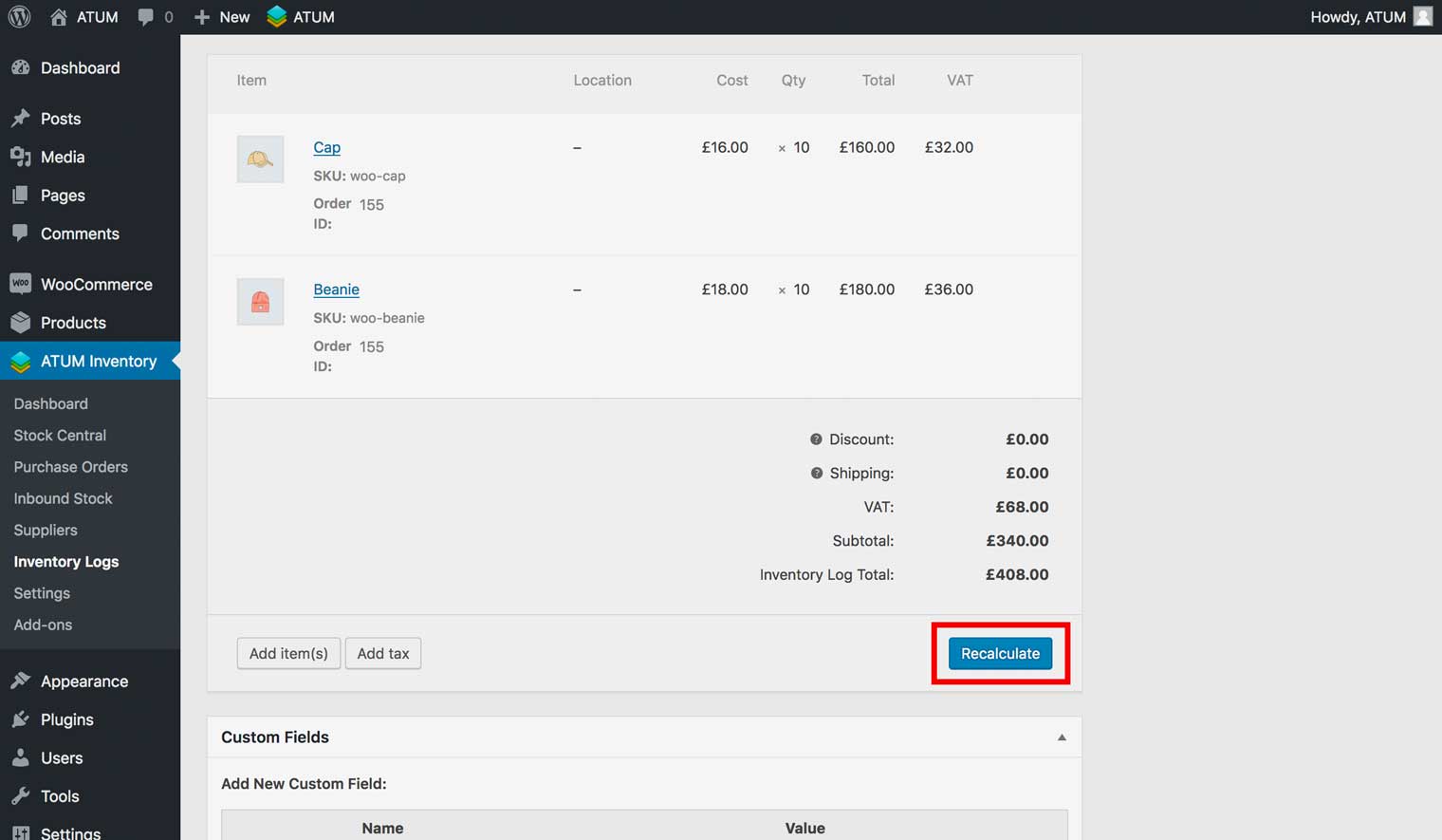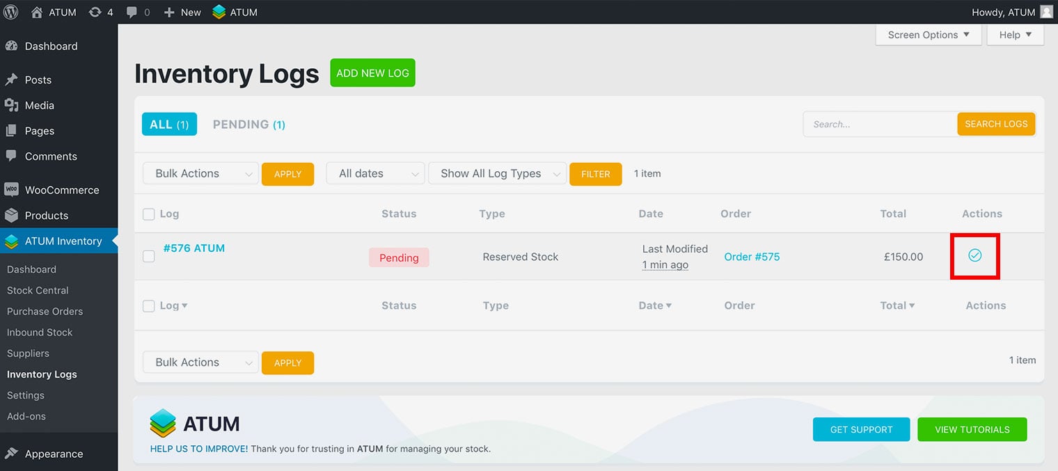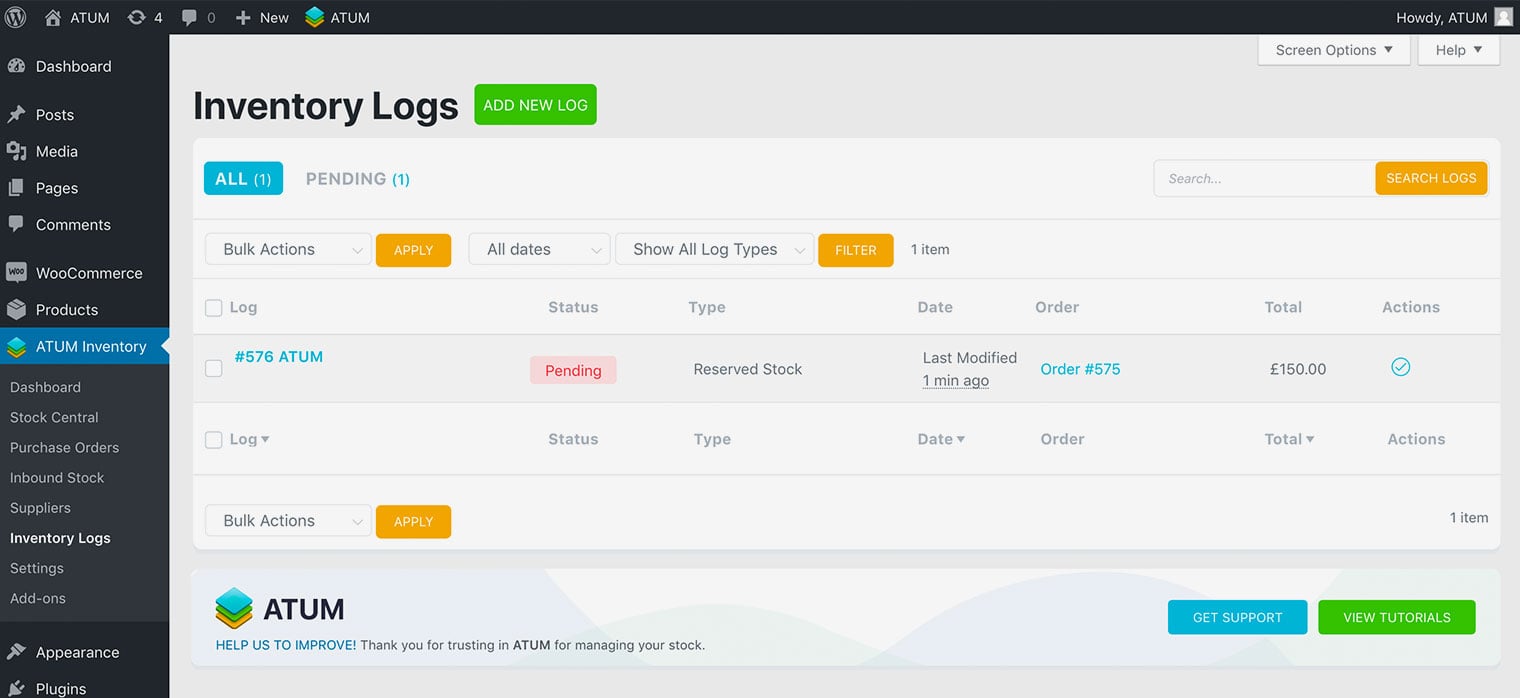 1. Go to ATUM Inventory > Inventory Logs.