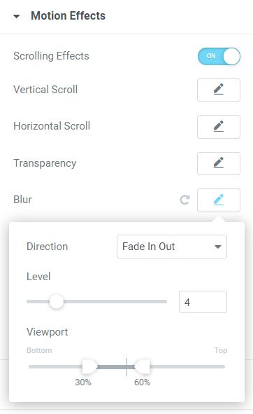 Fade In – The element starts as blurry and gradually becomes clear, based on the level and viewport settings.