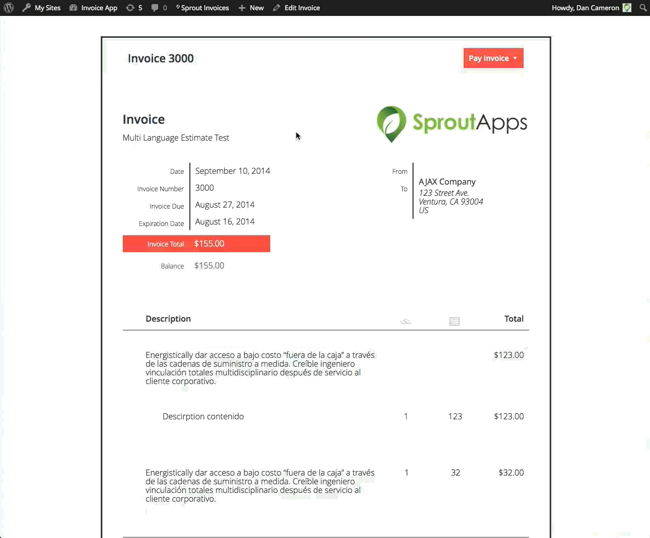 After adding custom templates to your WordPress theme you’re able to select the template from the document (estimate or invoice) edit screen.