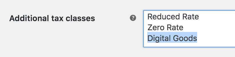 1. Go to: WooCommerce > Settings > Tax > Digital Goods (now a new tab after you created a new tax class).