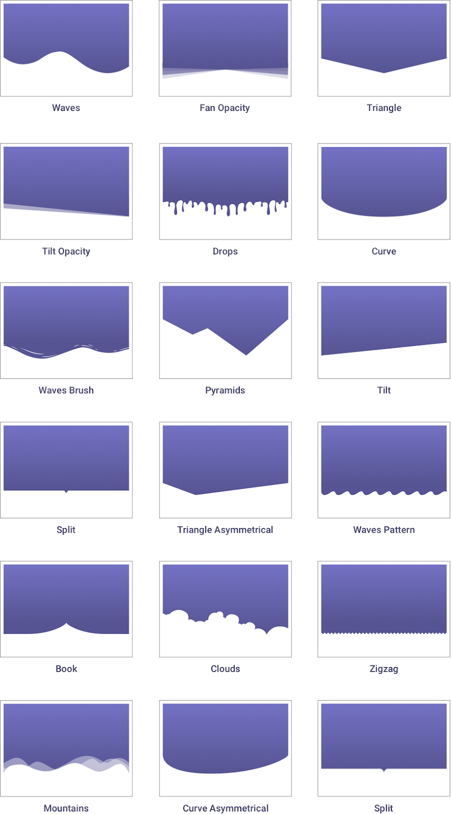 Shape dividers are graphic shapes that separate the sections of a page.