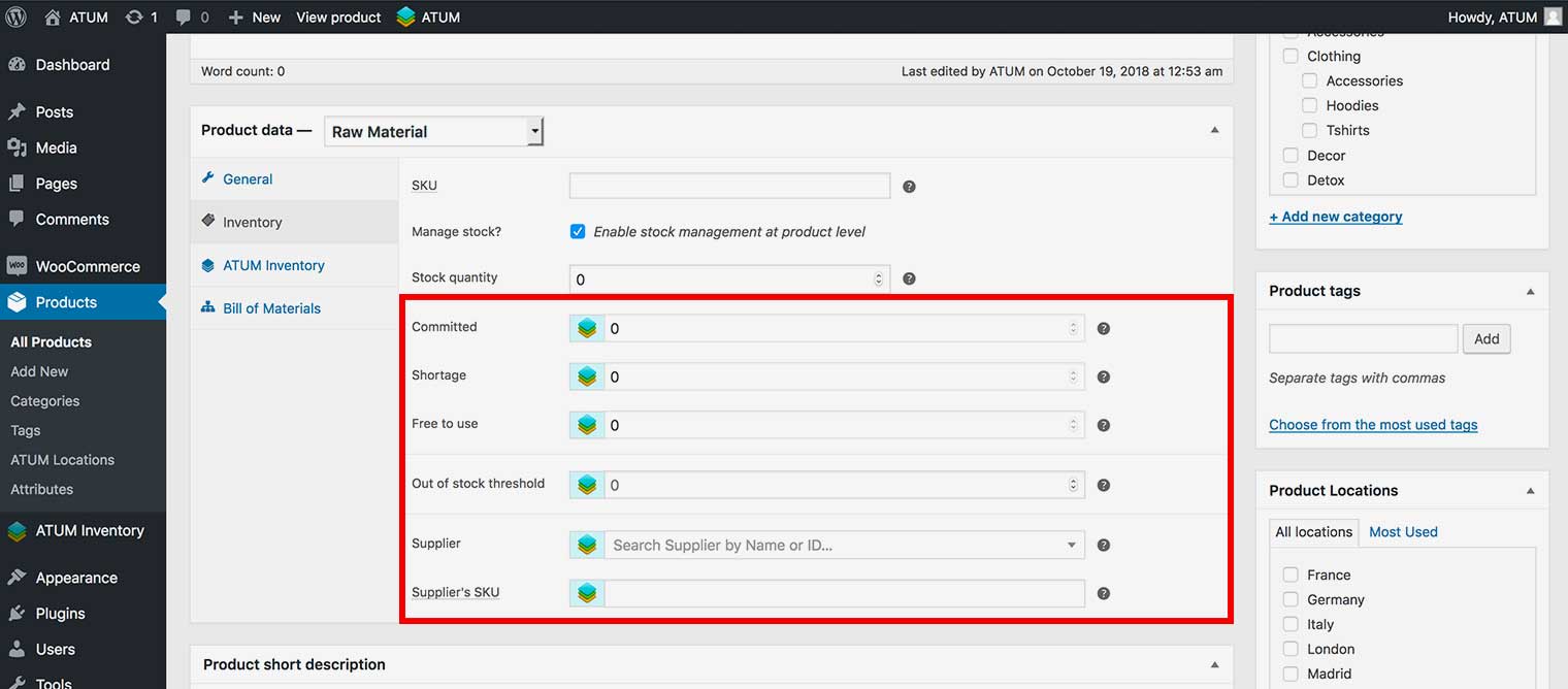 Also you will find the Supplier and Supplier’s SKU data fields from ATUM Free.