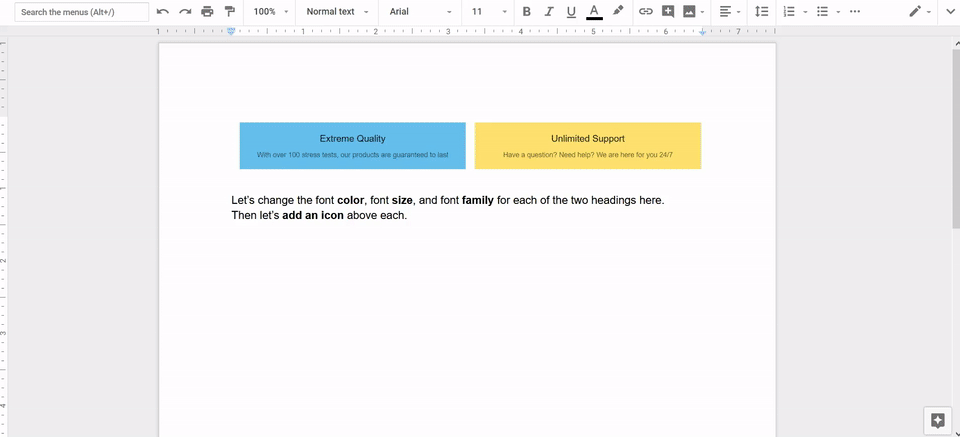 - Add an icon above the two boxed headings.