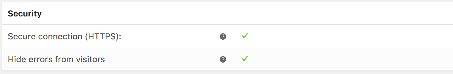 Displays whether your connection is protected. Errors should be hidden from untrusted visitors trying to view your information.